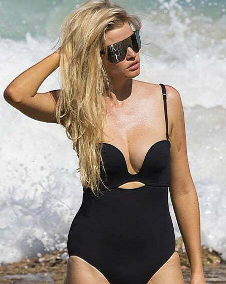 All the boob: Lara Stone flaunts major underboob and cleavage in sexy swimwear